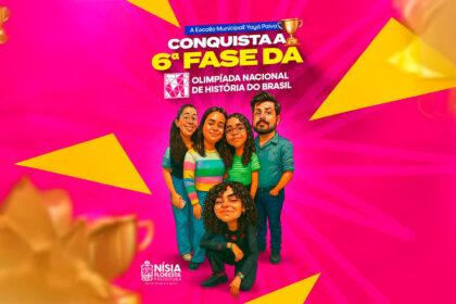 A Escola Municipal Yayá Paiva chegou à 6ª fase da Olimpíada Nacional de História do Brasil (ONHB)! A equipe formada pelas alunas Layla Gabreielly, Rayane Emanuelly e Ysabelle Marielly, com apoio ...