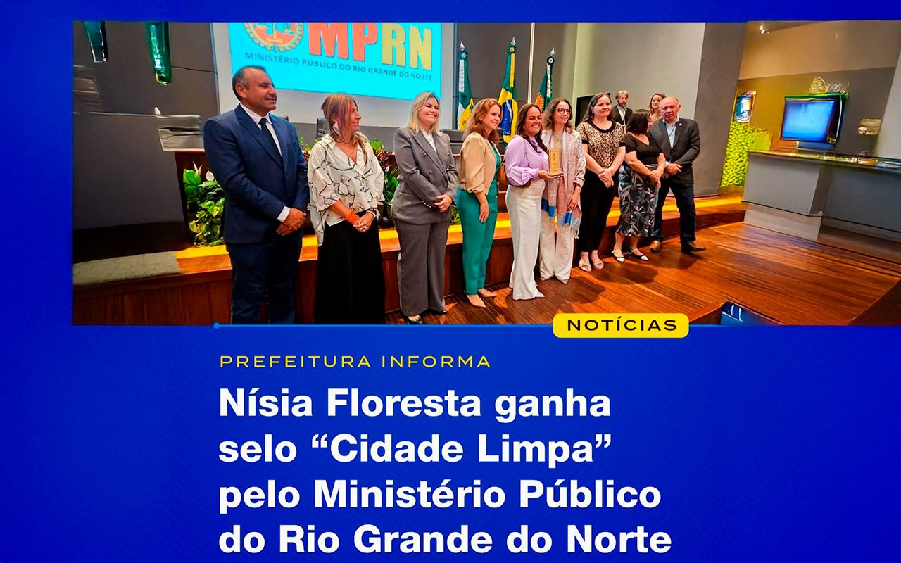 O município de Nísia Floresta foi contemplado com o Selo Cidade Limpa, uma importante iniciativa do Ministério Público do Rio Grande do Norte (MPRN) que reconhece os municípios que realizam a destinação correta dos resíduos sólidos.